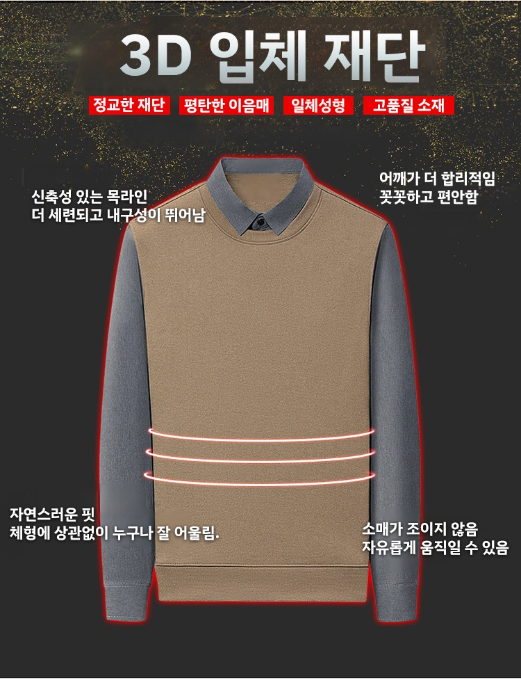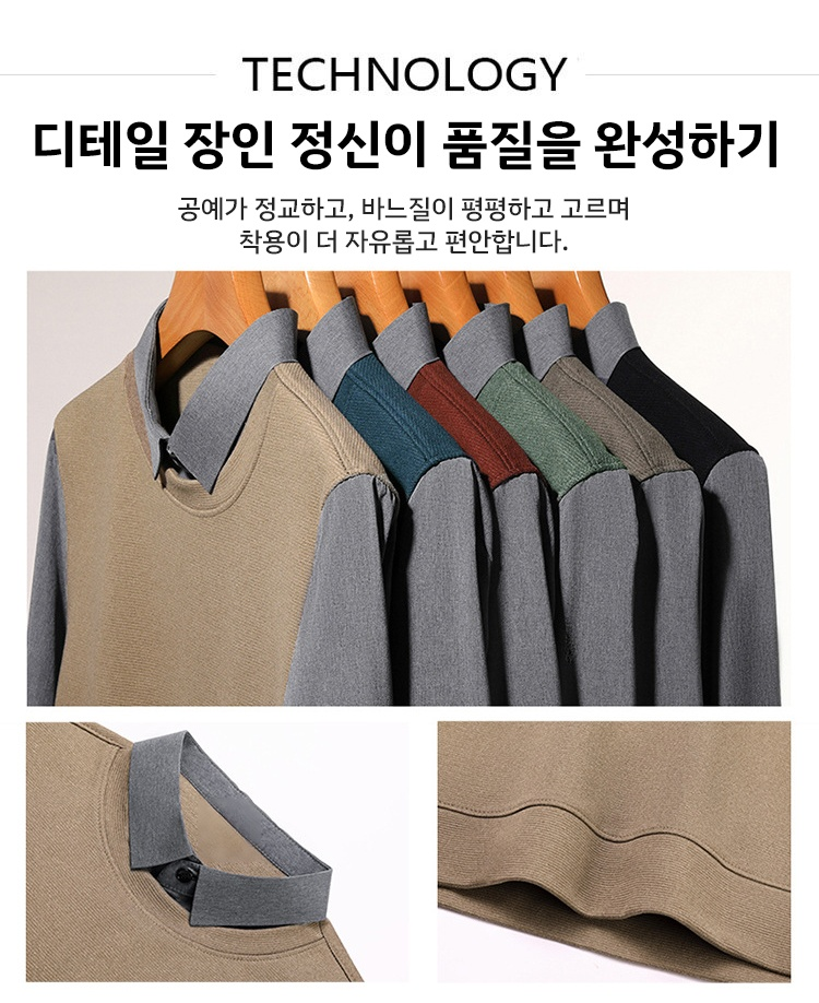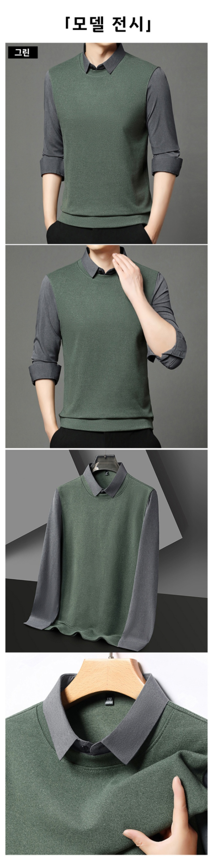 남성용 기본형 페이크 레이어드 긴팔 티셔츠